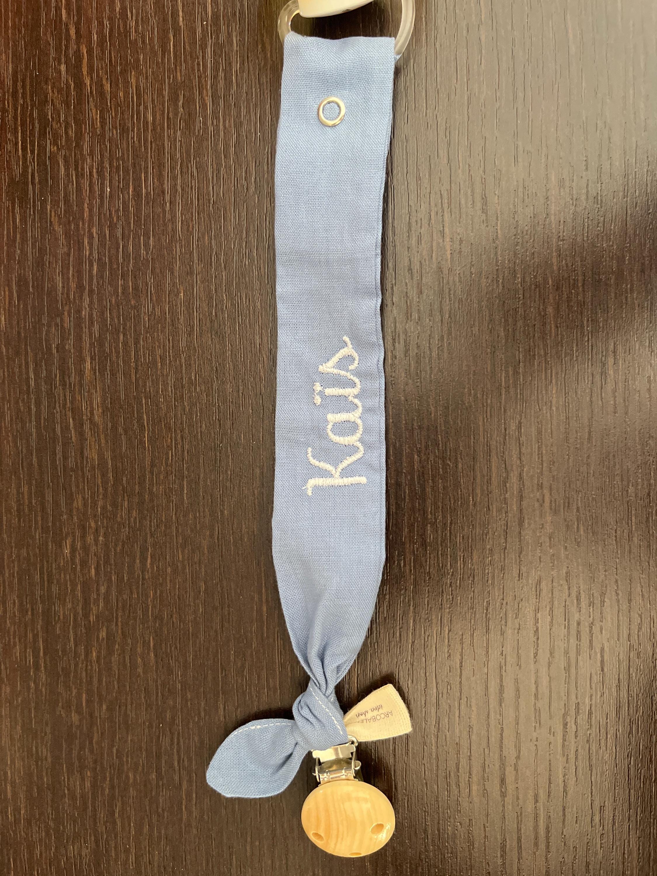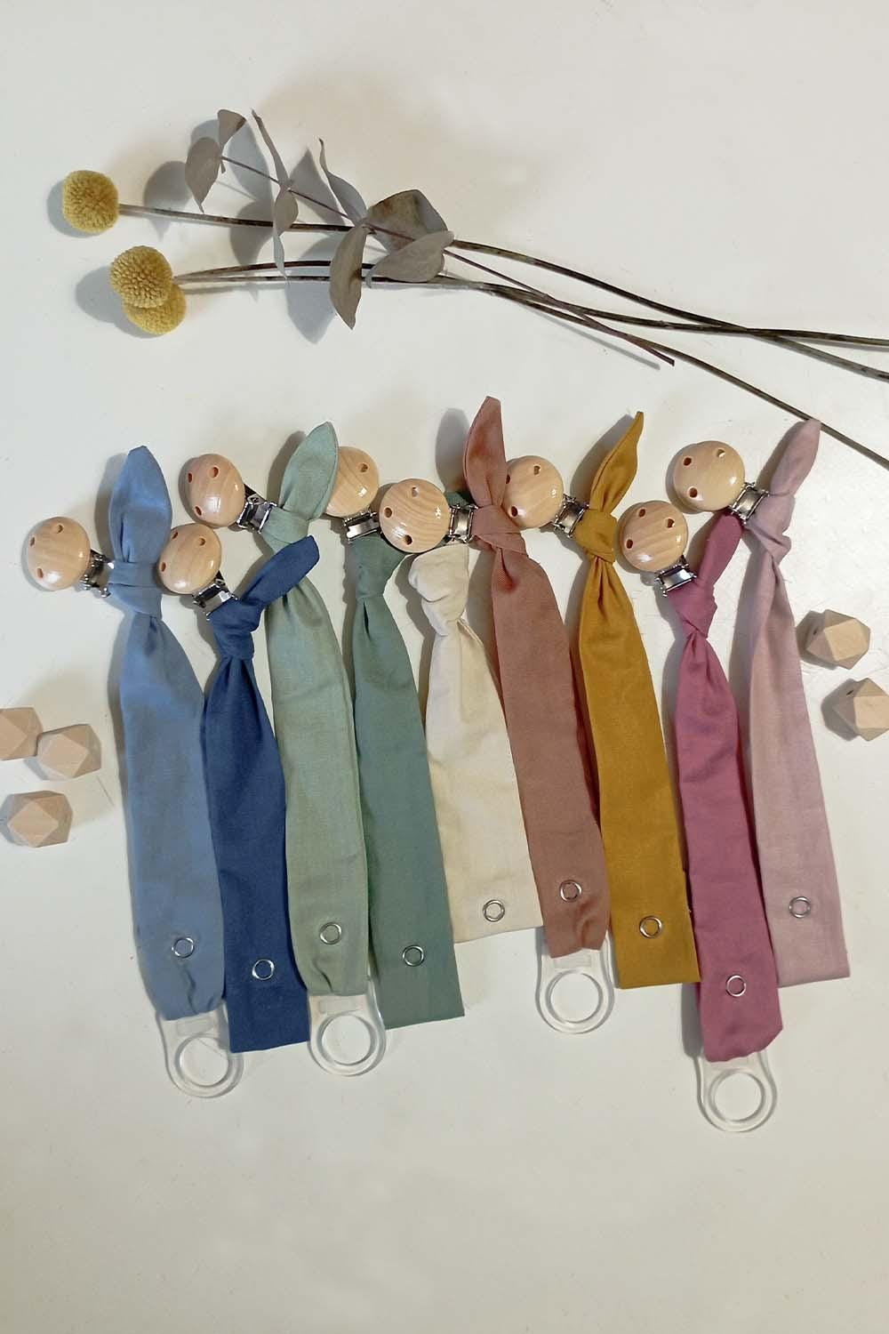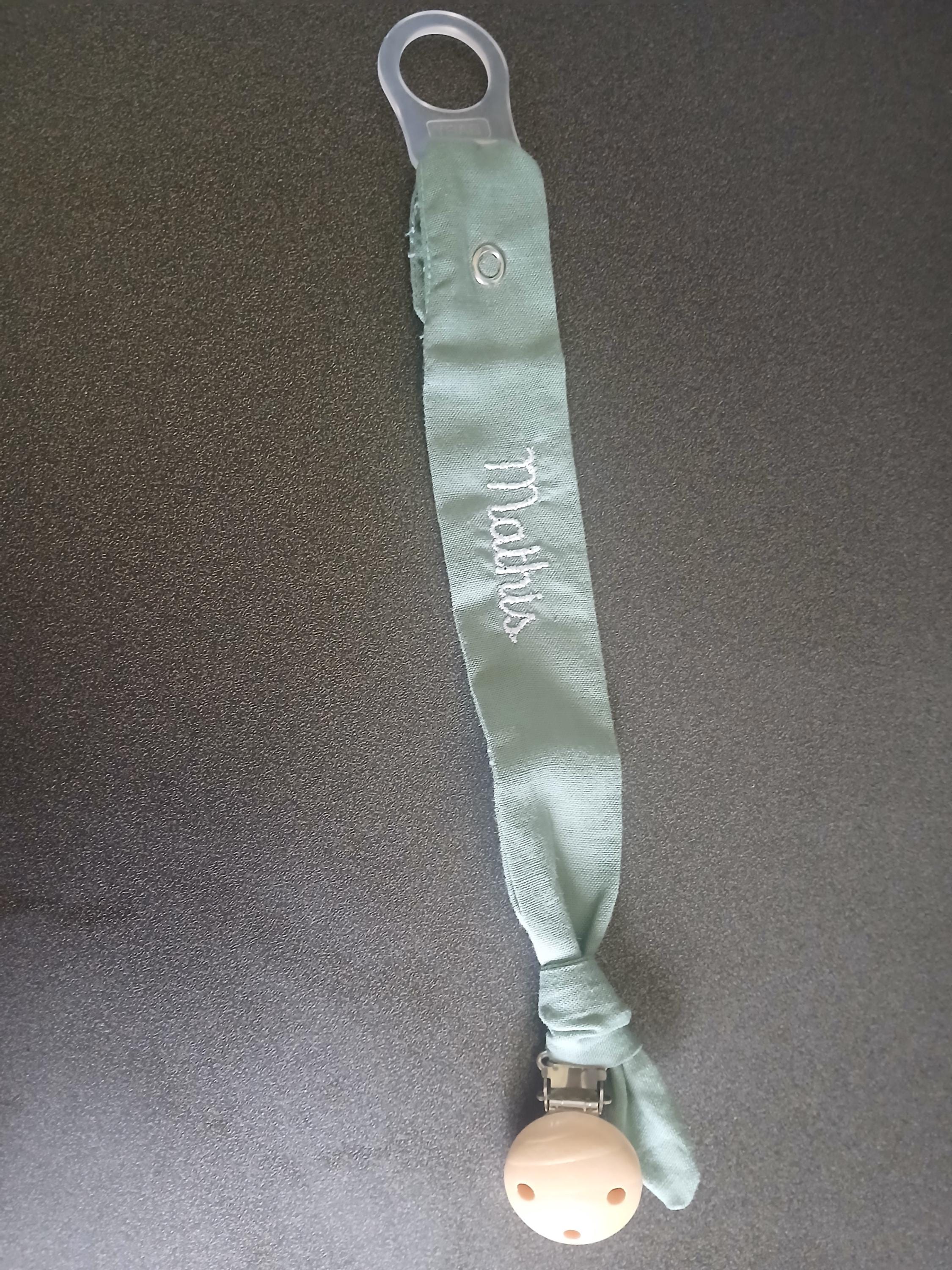 Handmade 100% organic cotton pacifier holder.