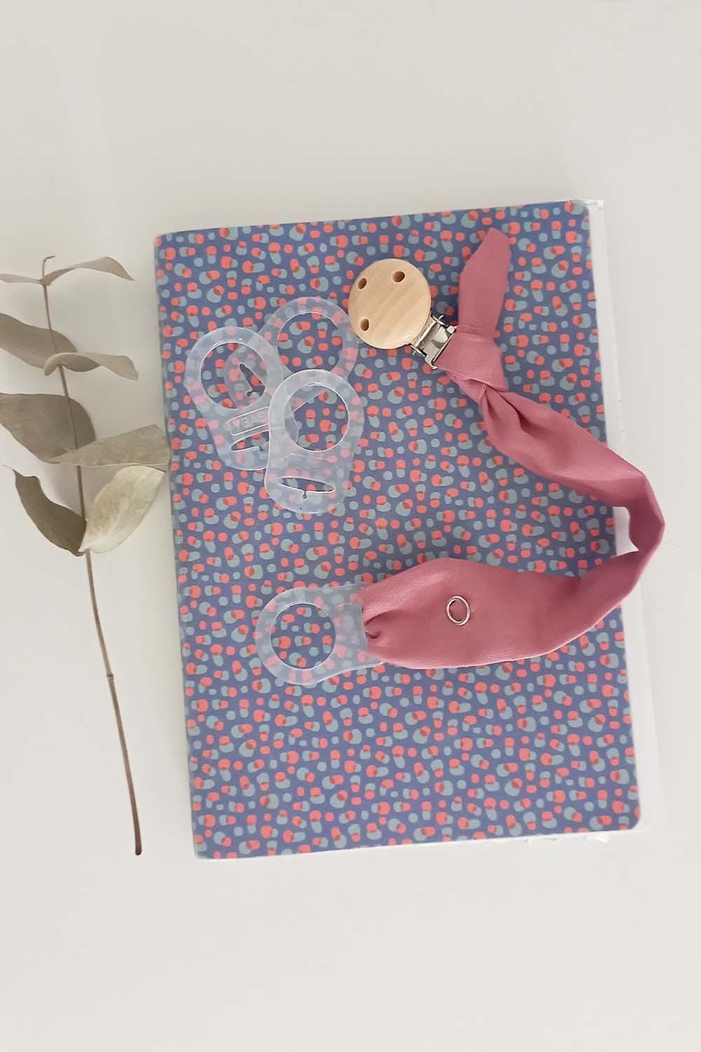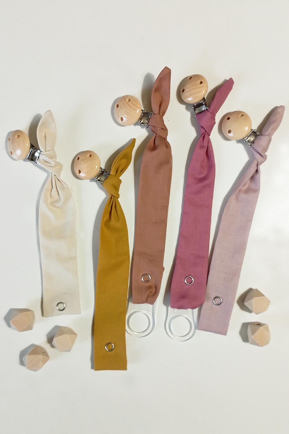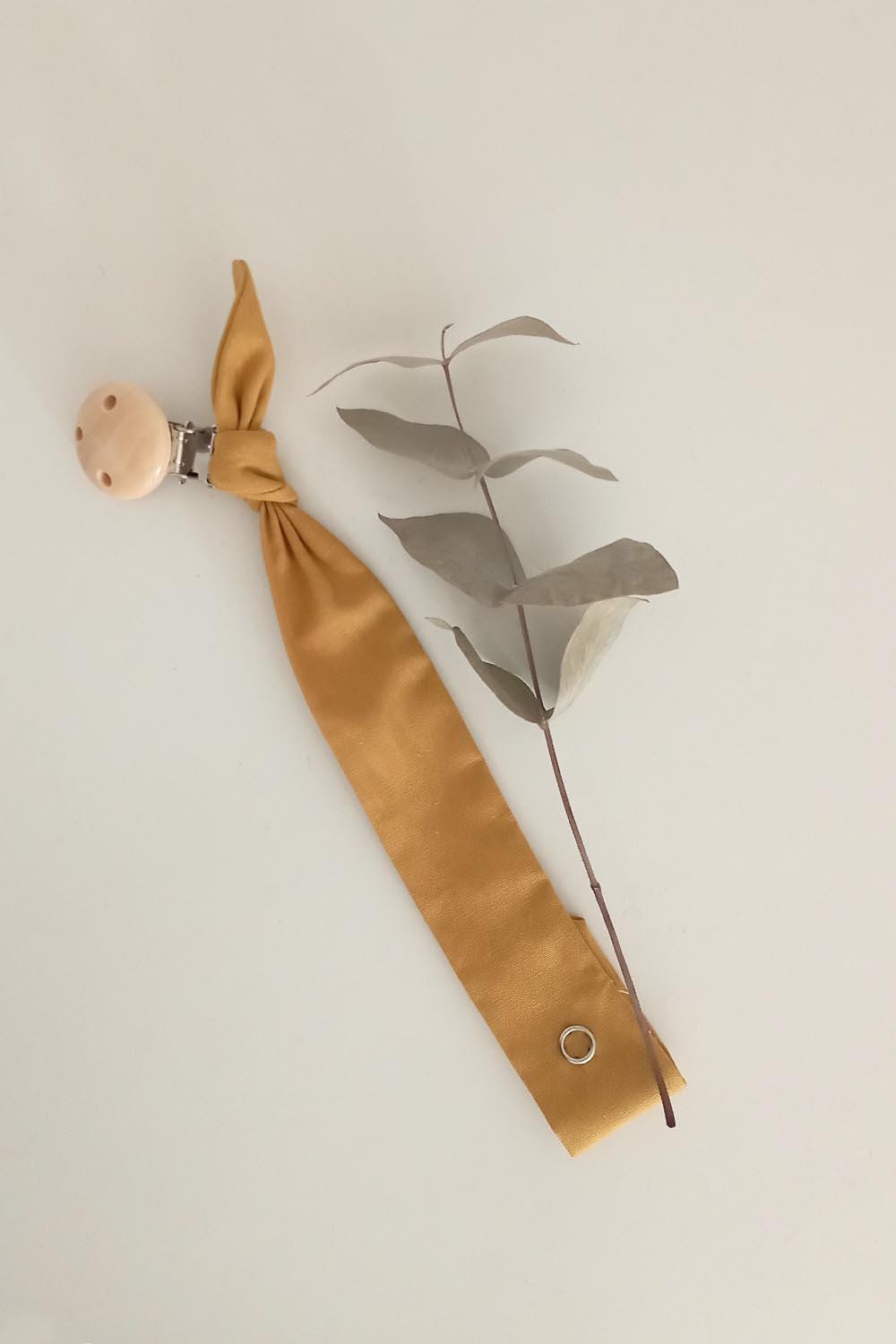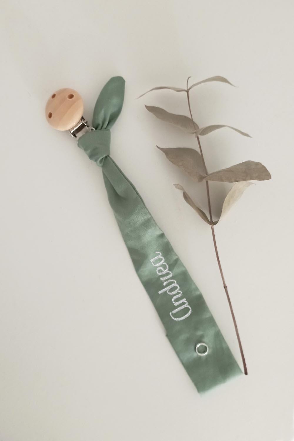 Handmade 100% organic cotton pacifier holder.