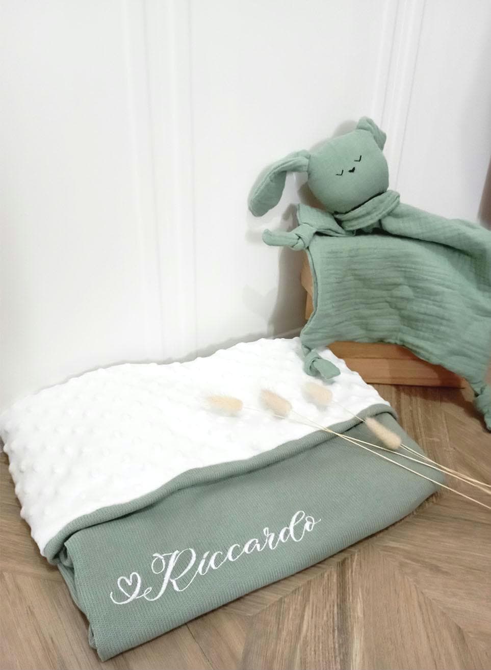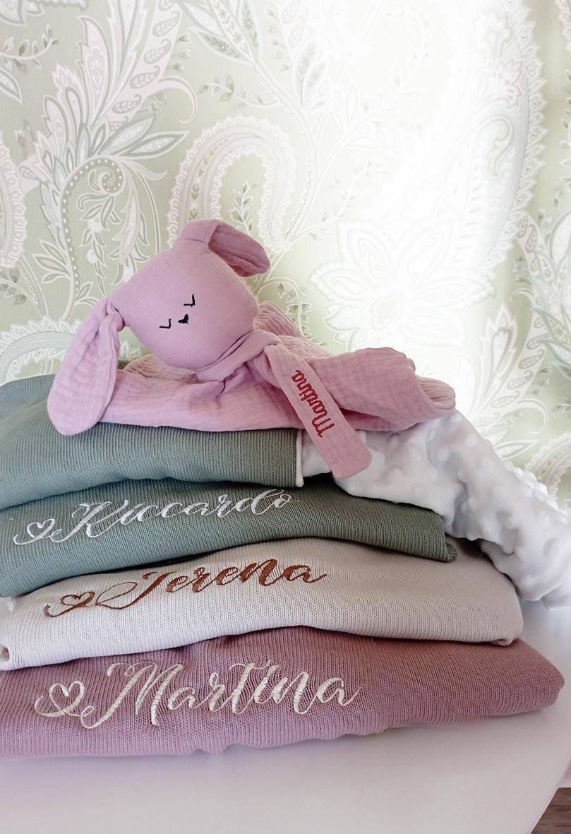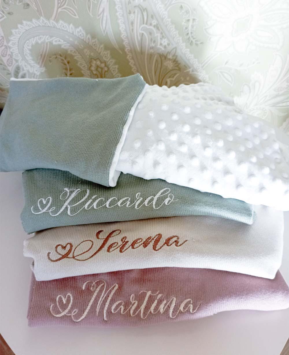 Il ricamo del nome viene fatto in abbinamento come da foto ma è possibile modificarlo, basta contattarmi scrivendomi un messaggio.